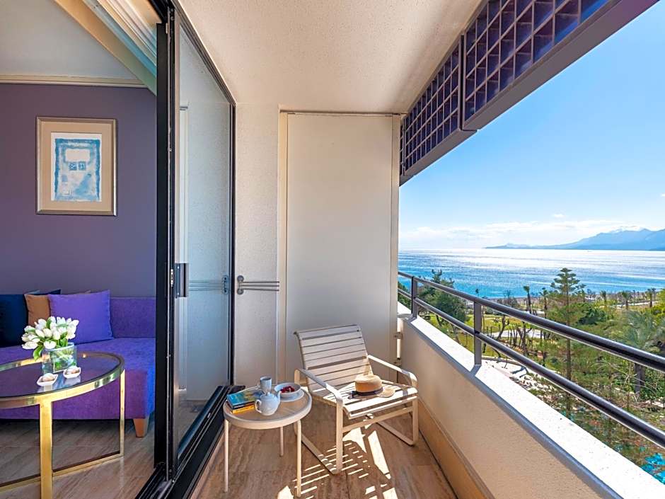 The spacious double room features air conditioning, soundproof walls, a balcony with sea views as well as a private bathroom boasting a walk-in shower.